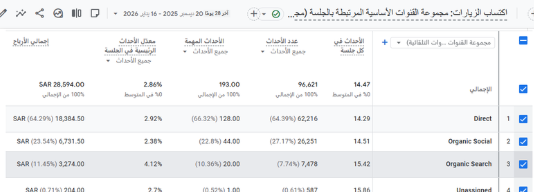 مصادر الزيارات (جوجل – سوشيال – مباشر)